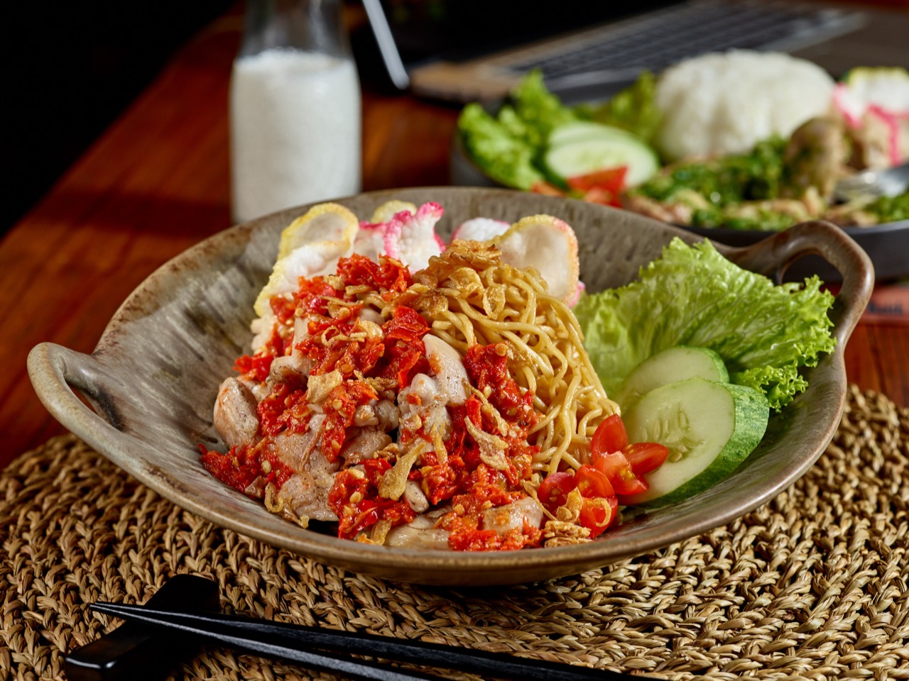 Try this: The Ayam Geprek Indomie is a crowd-pleaser as well as Ayam Geprek Salted Egg. We also recommend the Ayam Geprek Trio Sambal which serves three different chillies.